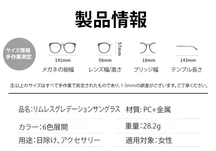 リムレスグレデーションサングラス